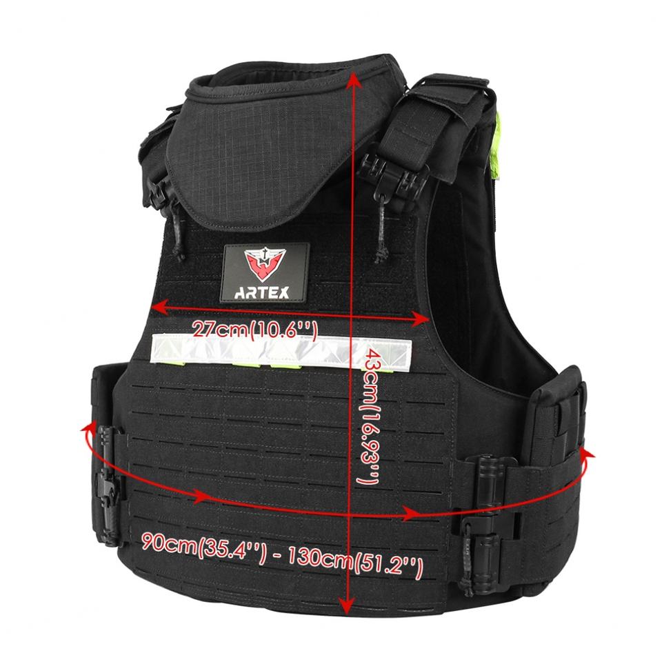 เสื้อกั๊กยุทธวิธี ARTEX แบบปรับได้ พร้อมแผ่นกันกระสุน ระบบ MOLLE สีดำ