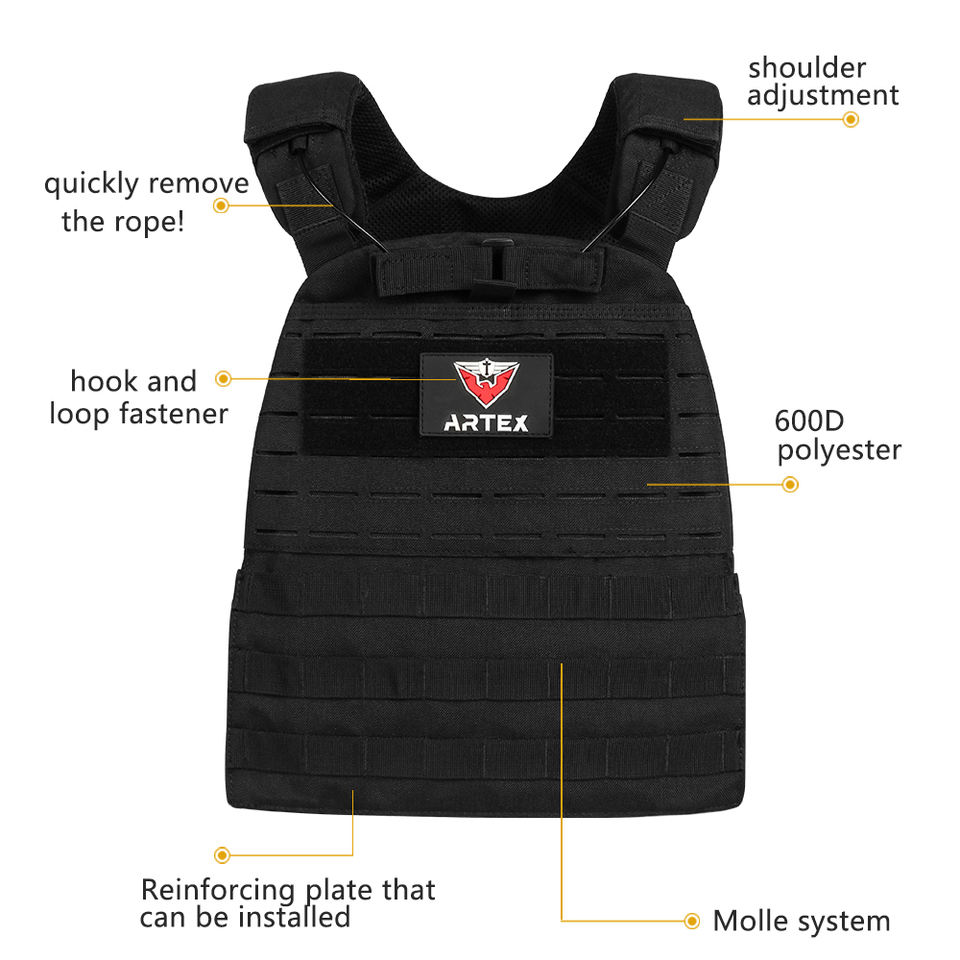 เสื้อกั๊กแทคติคอล ARTEX สีดำแบบกำหนดเอง ตัดด้วยเลเซอร์ ระบบ Molle ถอดเร็ว น้ำหนักเบา สำหรับปฏิบัติการพิเศษและการล่าสัตว์