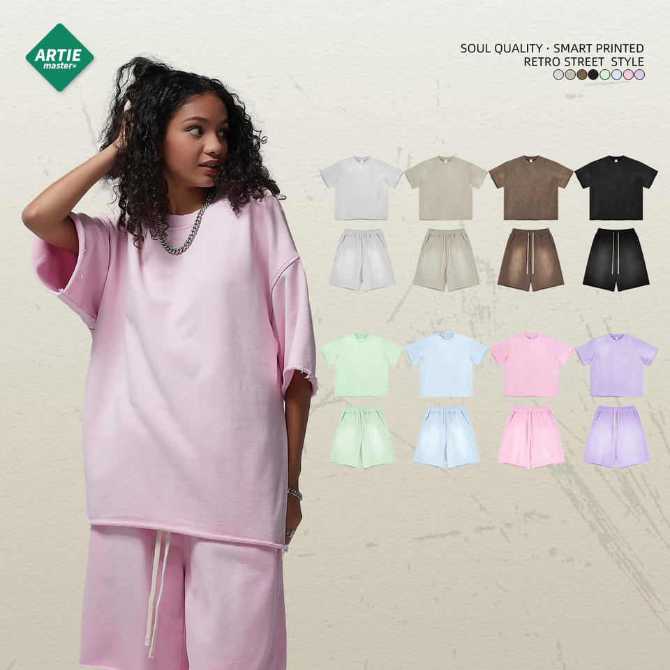 Artie 2024เสื้อผ้าผู้ชายสำหรับฤดูร้อนกางเกงขาสั้นผู้ชายกางเกงขาสั้นแขนสั้นขัดย้อมสีย้อมสีอ่อนสำหรับคู่รัก