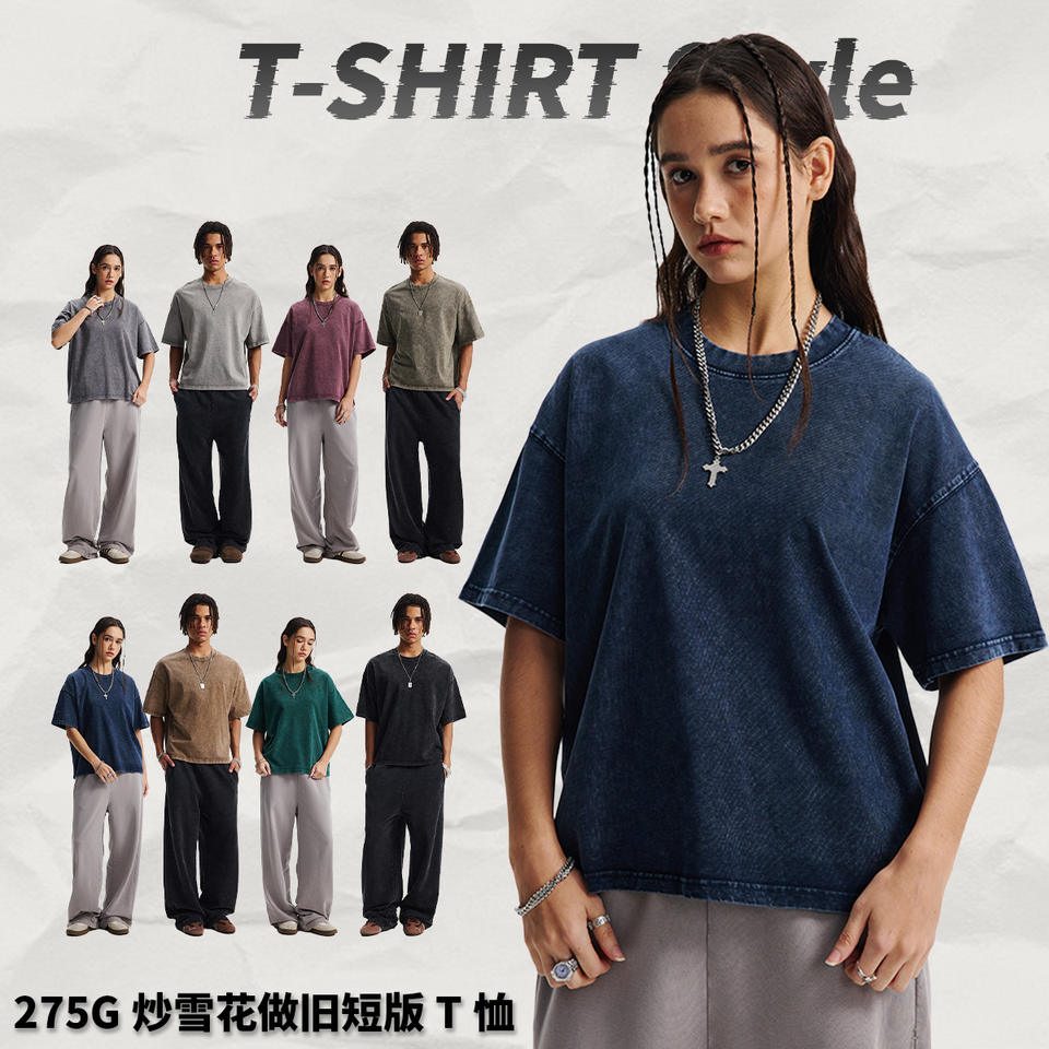 ARTIE Men's Trendy European American Boxy Version Loose Short Style Fried Snowflake Washed Old T-Shirt with Basic Short Sleeve