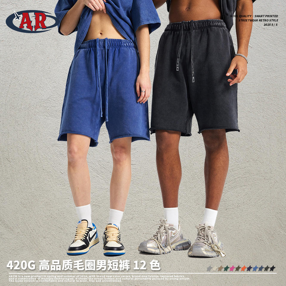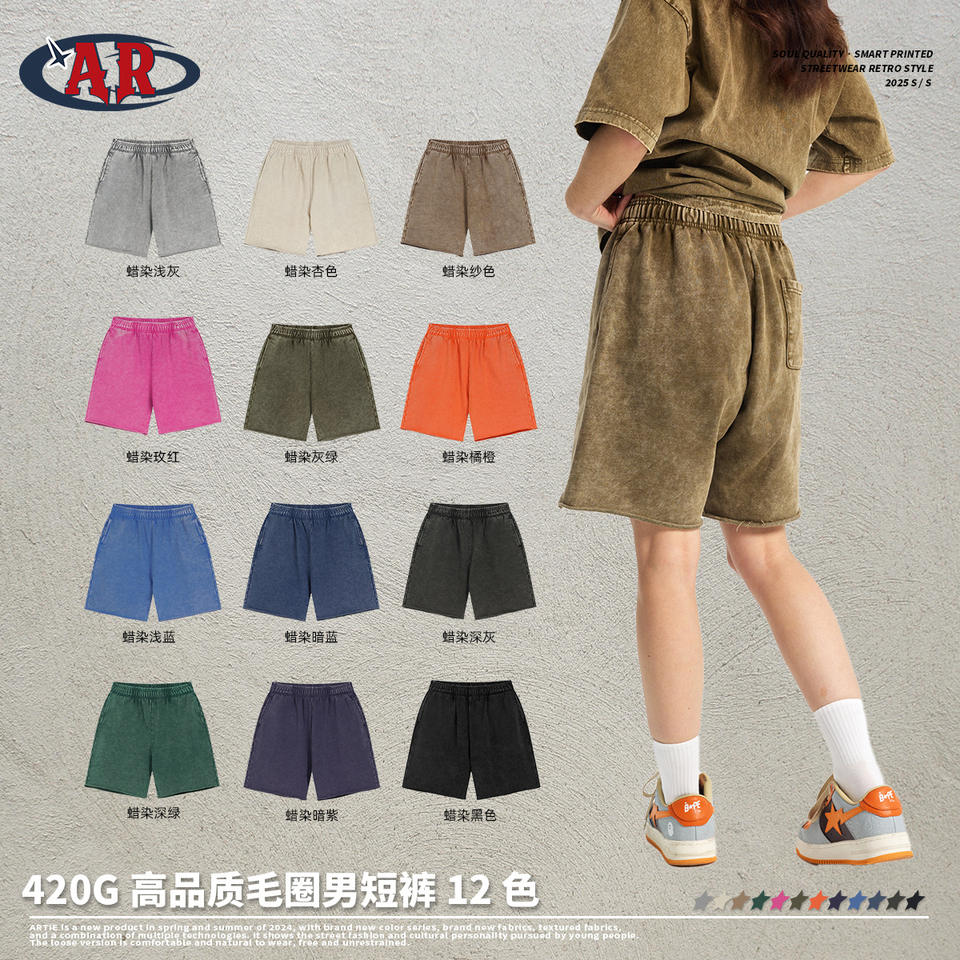 ARTIE Men's Wear丨2025 Hot Edition Batik Washed Heavy 420g Distressed Men's Shorts European and American Retro Shorts Men