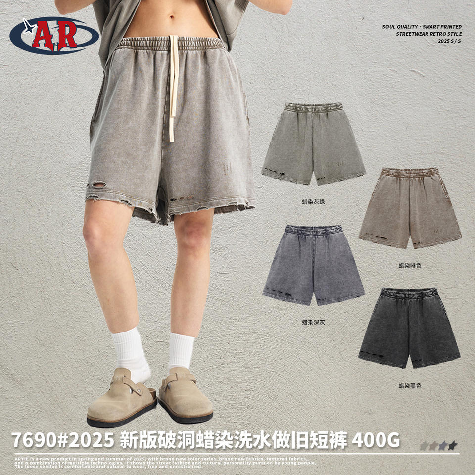 ARTIE2025กางเกงขาสั้นผ้าฝ้ายหลวมสำหรับผู้หญิงมาใหม่สไตล์อเมริกันสตรีทซักและตัดงานฝีมือเก่าสีกลาง