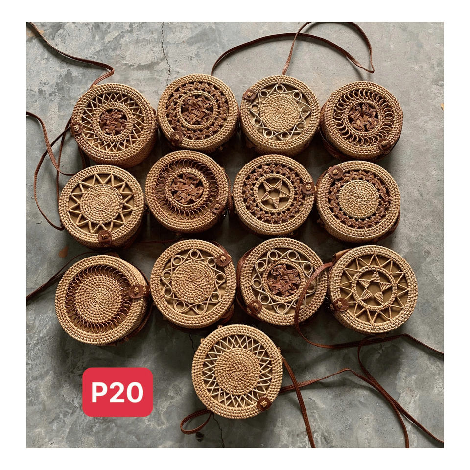 กระเป๋าสะพายข้างหวายทำมือประดับเปลือกหอย