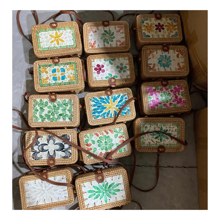 คำหลัก:กระเป๋าถือผู้หญิง, กระเป๋าหวายฝังมุก