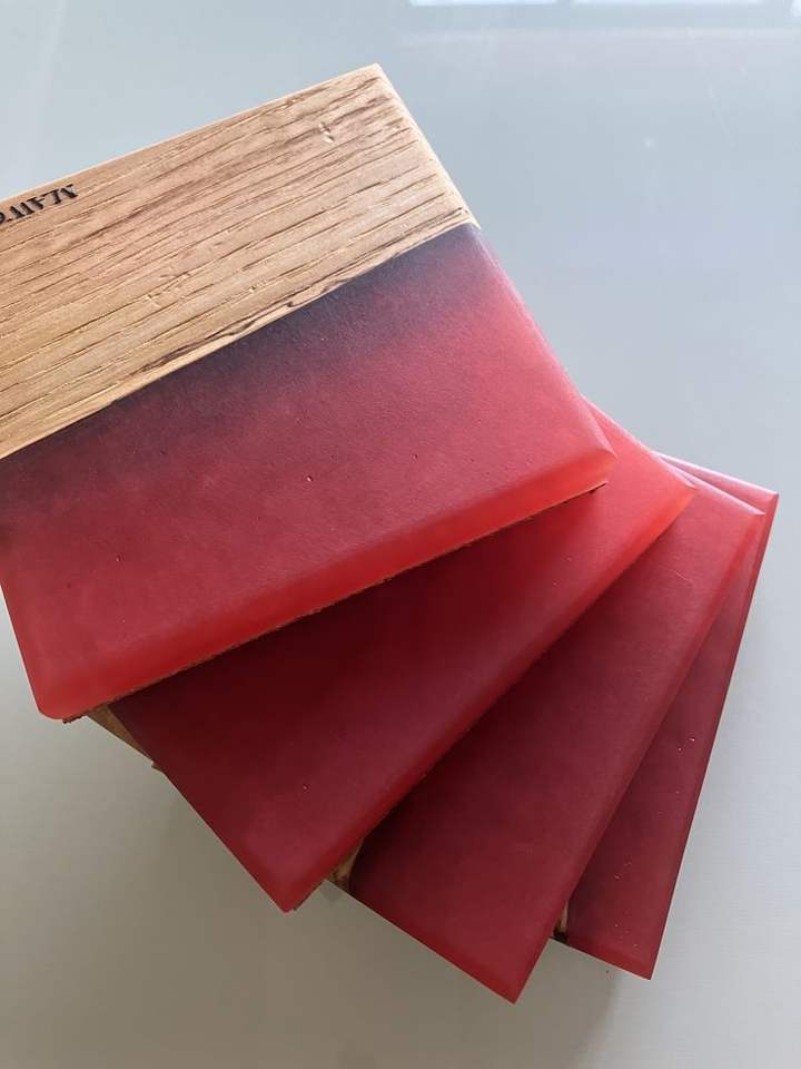 ชุดจานรองแก้วทำจากเรซินอีพ็อกซี่เรซิ่นทรงสี่เหลี่ยมตกแต่งด้วยงานฝีมือคุณภาพของช่างฝีมือ
