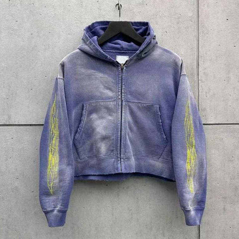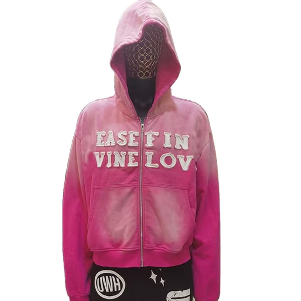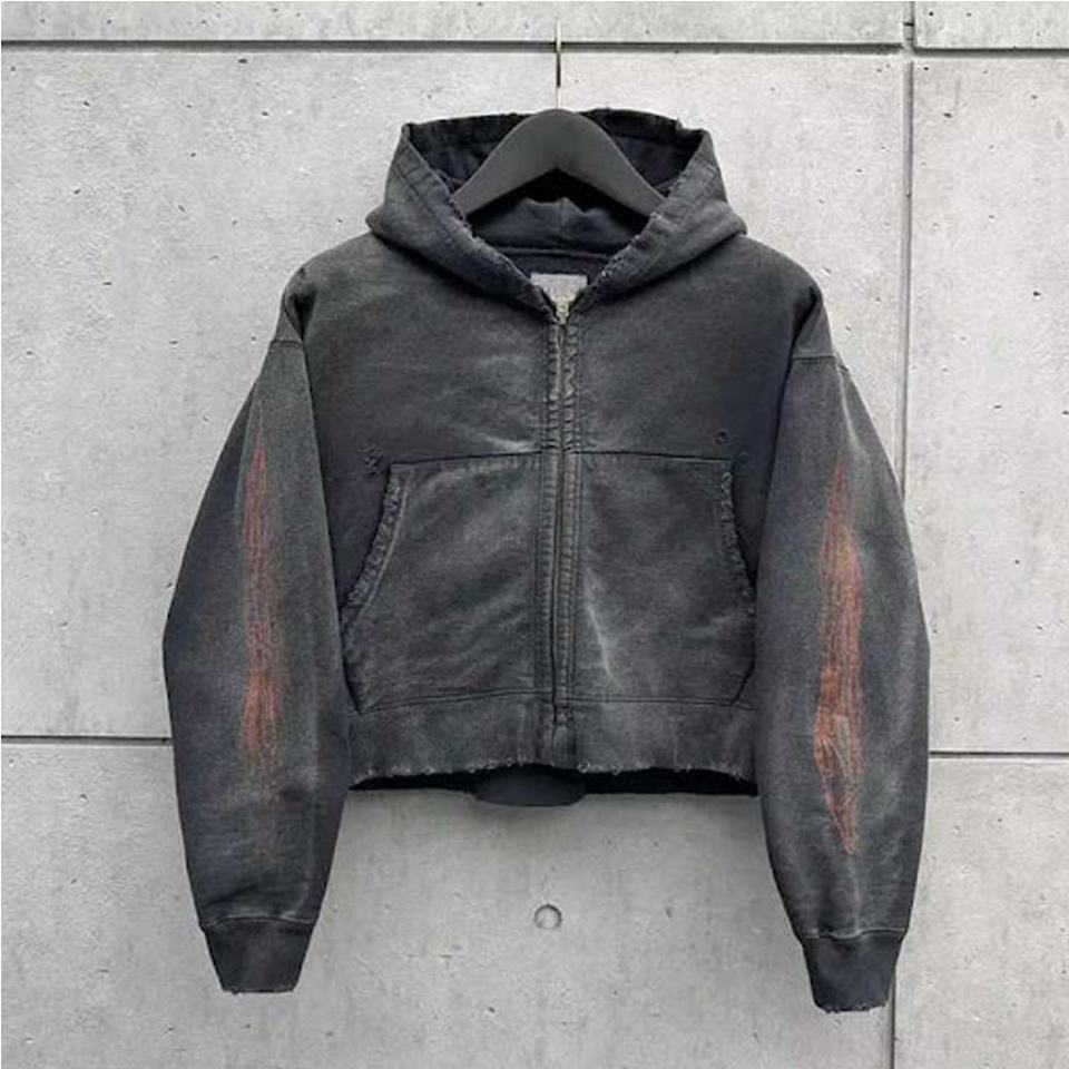 เสื้อฮู้ดฟอกสีมีซิปสำหรับศิลปินฤดูหนาวผ้าเฟรนช์เทอร์รี่100% ผ้าฝ้ายปักลายแนววินเทจ