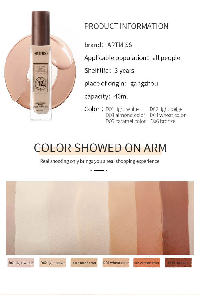 ชื่อผลิตภัณฑ์:รองพื้นเหลวบำรุงให้ความชุ่มชื้น12ชั่วโมง