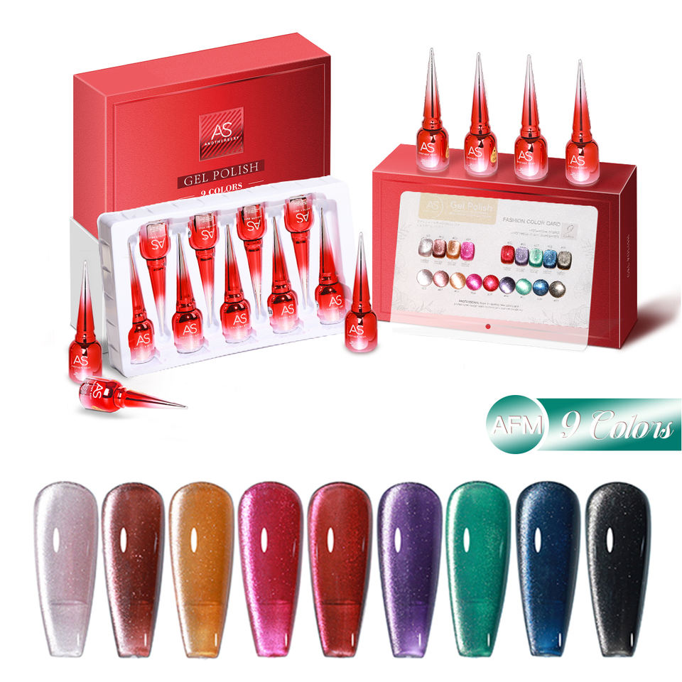 AS 9 Colors Ruby Sparks Collection Glitter Gel Polish Cat Eye Magnetic Gel Burgundy Red Sparkle Bloody Custom Nail Polish Kit