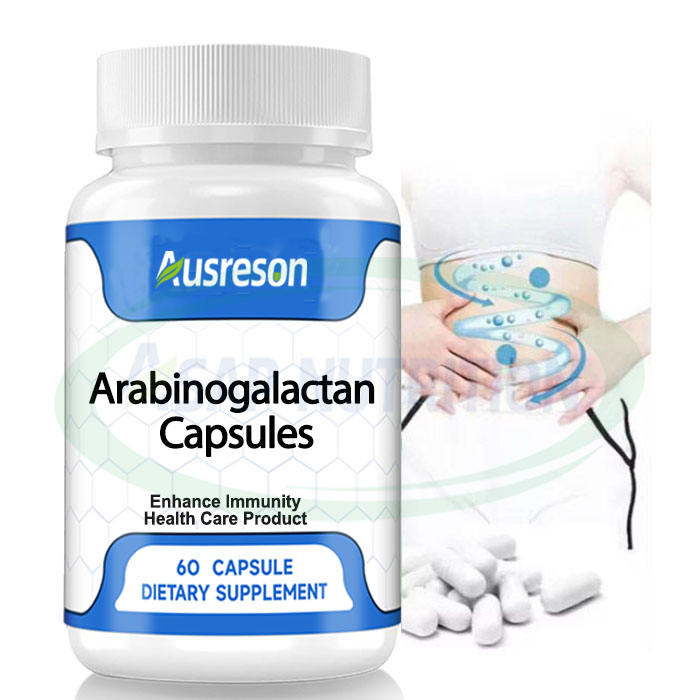 แคปซูลแอสเอเอพี อาราบิโนกาแลคแทน สารสกัดจากต้นลาร์ช ไฟเบอร์พรีไบโอติก เกรดอาหาร ได้รับการรับรองฮาลาล 60 แคปซูล/ขวด บำรุงสุขภาพลำไส้