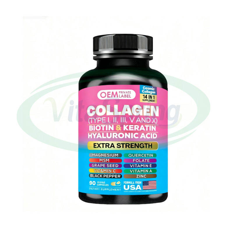 แคปซูลคอลลาเจนสำหรับผู้หญิงหลายคอลลาเจนเสริมด้วยวิตามินซีไบโอตินเคราติน-ผิวหนังเล็บผมเติบโต