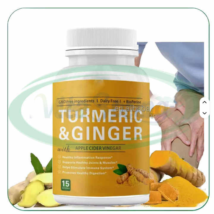 แคปซูลสารสกัดขมิ้นชันดำผสมขิงและเคอร์คูมิน บำรุงข้อต่อ สารต้านอนุมูลอิสระ อาหารเสริมสำหรับผู้ใหญ่ เสริมสร้างภูมิคุ้มกัน