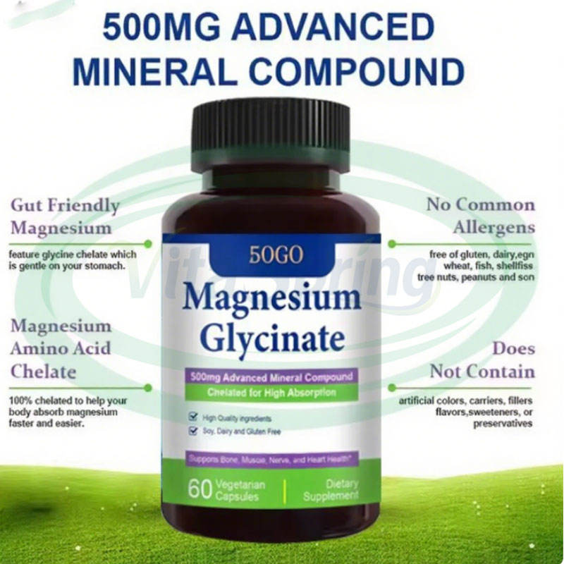 แมกนีเซียมไกลซิเนตและซิงค์ OEM ผลิตภัณฑ์เสริมอาหาร 500 มก. ชนิดเชลเลต สำหรับผู้ใหญ่ ทานได้ทั้งคนทานมังสวิรัติและคนทานอาหารออร์แกนิก บรรจุในแคปซูลเพื่อสุขภาพ