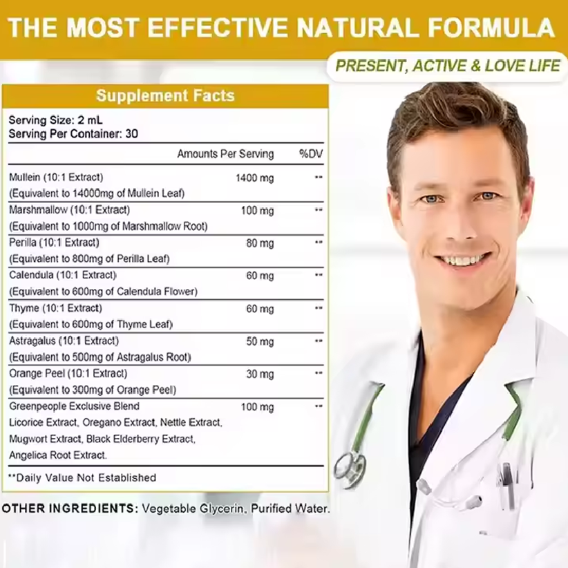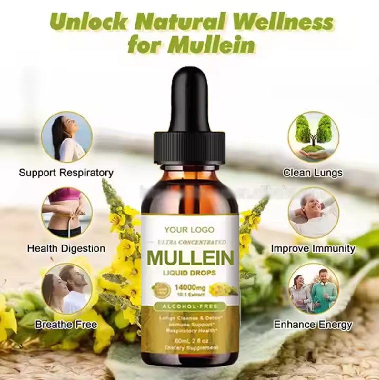 ยาสมุนไพรมูลเลนแบบหยดสำหรับผู้ใหญ่ ยี่ห้อ ASAP OEM สารสกัดจากใบมูลเลนธรรมชาติ สารต้านอนุมูลอิสระและช่วยทำความสะอาดปอด