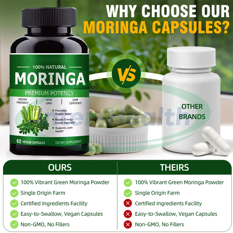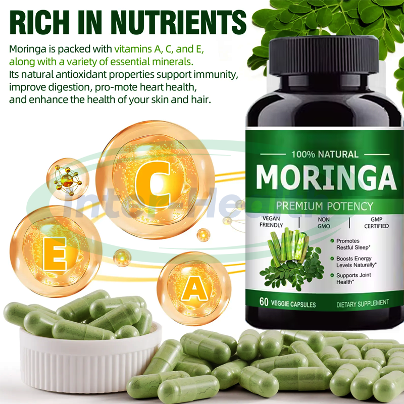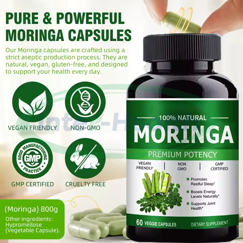 สารสกัดใบมะรุมออร์แกนิคเกรดอาหารเสริมสุขภาพสำหรับผู้ใหญ่ ช่วยเรื่องการเผาผลาญและเสริมสร้างภูมิคุ้มกัน แบบแคปซูล