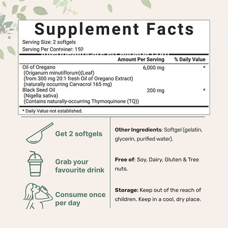 ส่วนผสมหลัก:น้ำมันออริกาโน น้ำมันเมล็ดเทียนดำ