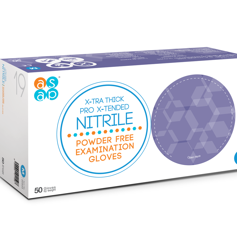 ถุงมือตรวจผงไนไตรล์ ASAP Pro X-tended ฟรี ถุงมือแบบใช้แล้วทิ้ง ถุงมือป้องกันมือ