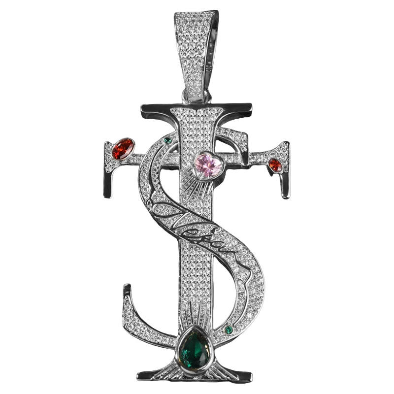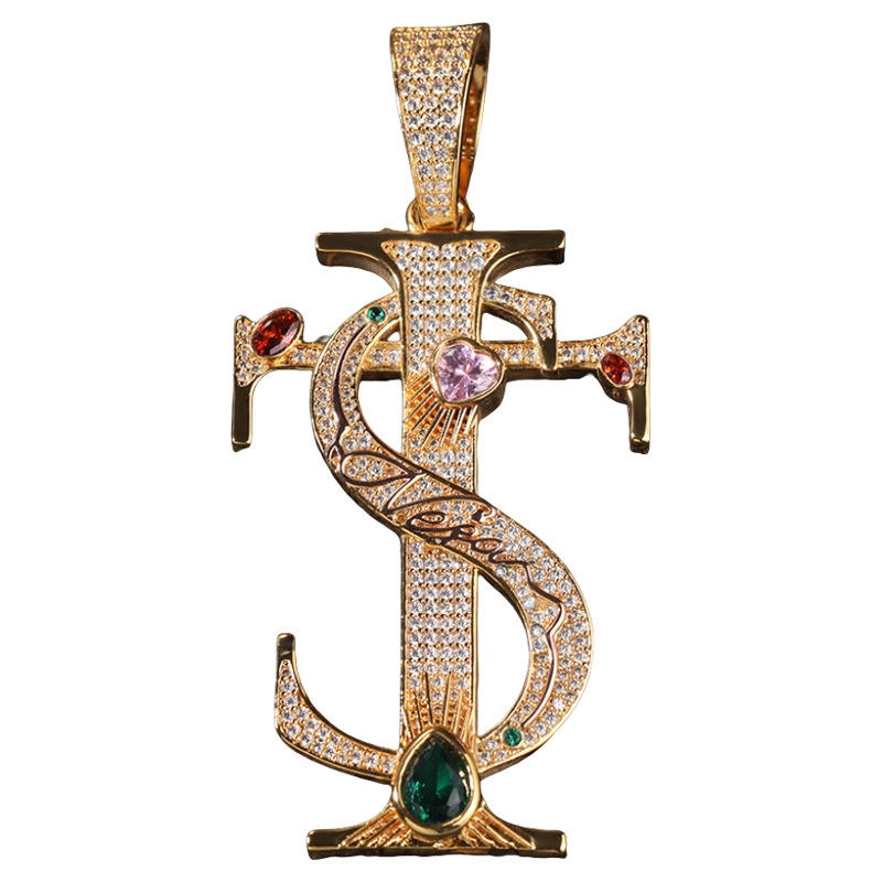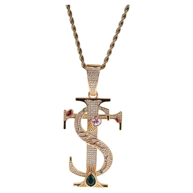 Asen Ai Zhiheng สร้อยคอฮิปฮอปส่วนบุคคลจี้เพทายฝังไมโครสีสำหรับผู้ชายผู้หญิง