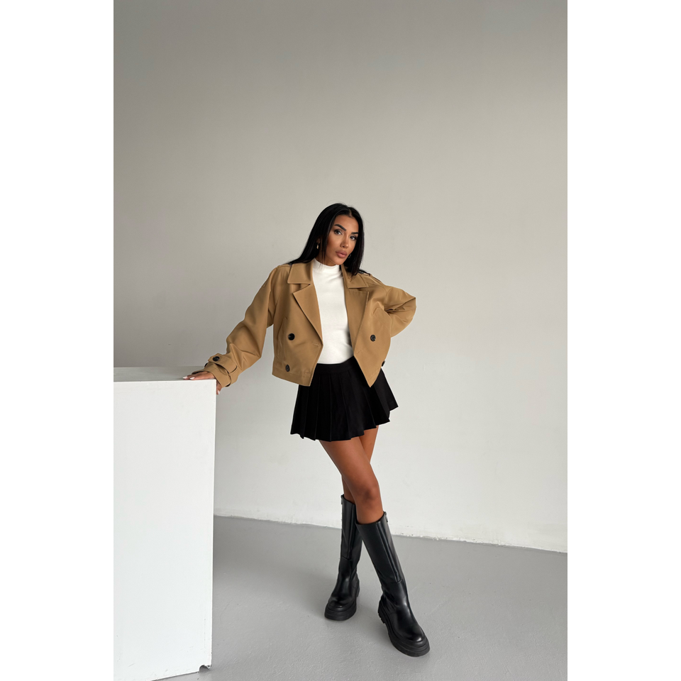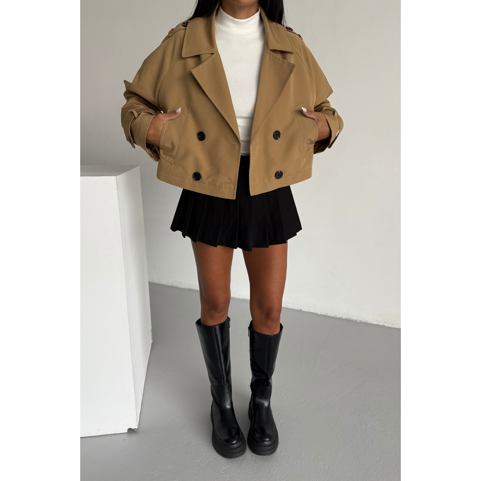 เสื้อโค้ทเทรนช์ผู้หญิง ASTARLI สไตล์วินเทจ กระดุมสองแถว สีคาเมล ผ้าเดนิมคอตตอน กันน้ำ ลายพิมพ์ ดีไซน์ยาวและสั้น สำหรับฤดูใบไม้ผลิและฤดูใบไม้ร่วง