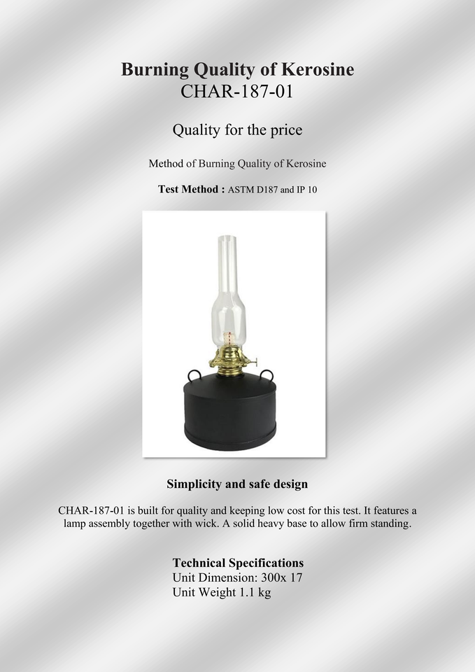 ASTM D187 IP 10 Kerosine Burning Quality Tester - Char Value Test Equipment with Flame Gauge & Wicks