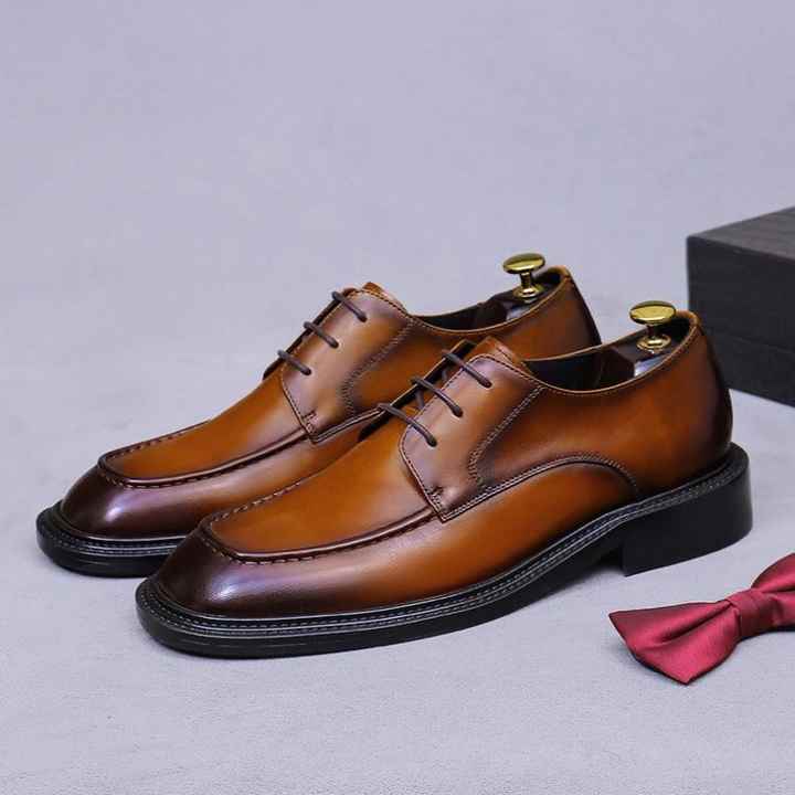 รองเท้า ASTON M.JAZZ ทำมือคุณภาพสูง รองเท้าผู้ชายทรงเหลี่ยมแบบผูกเชือก ระบายอากาศได้ดี น้ำหนักเบา ตกแต่งด้วยผ้าแบบ Patchwork เหมาะสำหรับงานแต่งงาน งานปาร์ตี้ และใส่ลำลอง