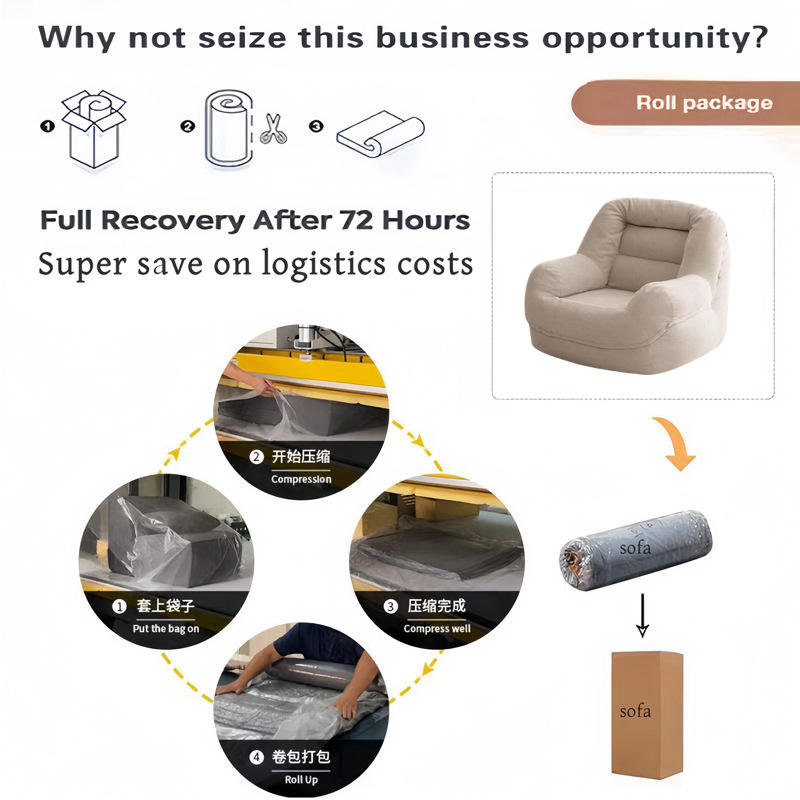 โซฟาในกล่อง - เก้าอี้นั่งสบายแบบผ้าคอร์ดูรอยบีบอัดแน่น ประหยัดพื้นที่ บรรจุแบบม้วน โซฟาพักผ่อน ฟองน้ำทนทาน เฟอร์นิเจอร์แบบที่นั่งเดี่ยว