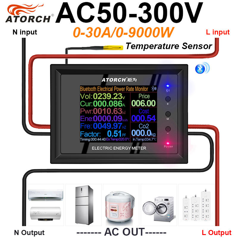 AT24-30A atorch AC50-300V/30A 2.4 "IPS จอแสดงผลดิจิตอลได้รับการรับรอง CE โวลต์มิเตอร์/แอมมิเตอร์วัตต์เครื่องทดสอบ