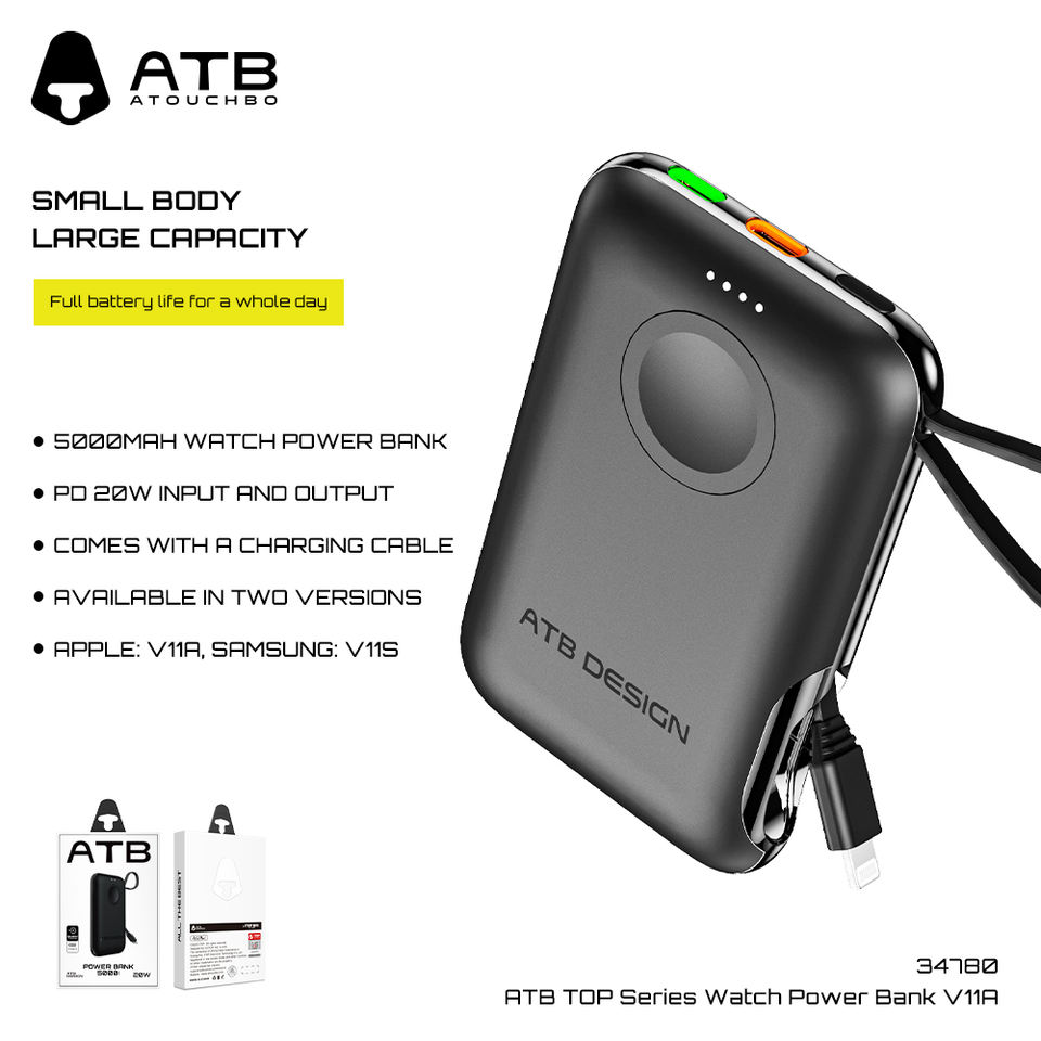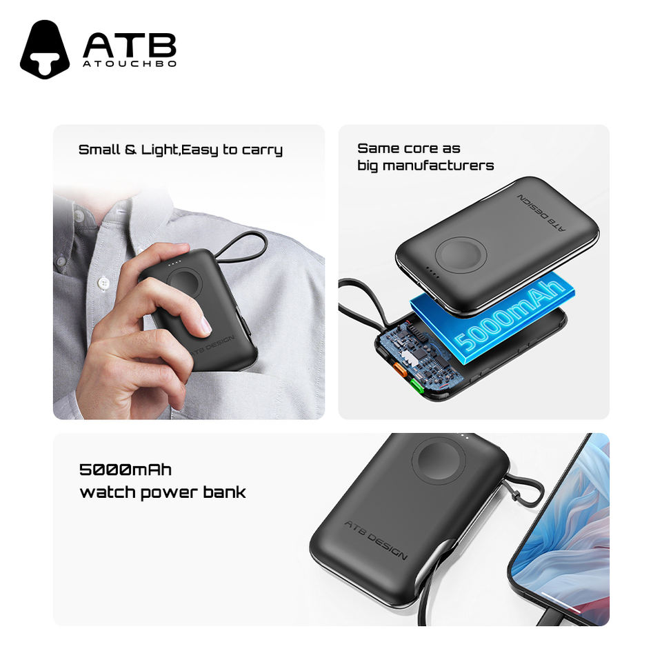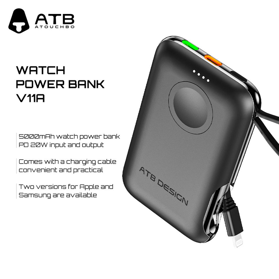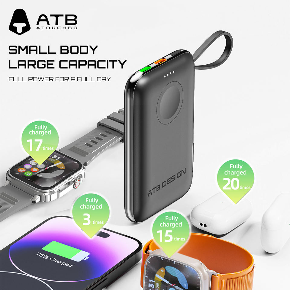 แบตเตอรี่สำรองไร้สายขนาดมินิ ATB QC 50000มิลลิแอมป์ต่อชั่วโมงสำหรับแอปเปิ้ลวอทช์หน้าจอดิจิตอล