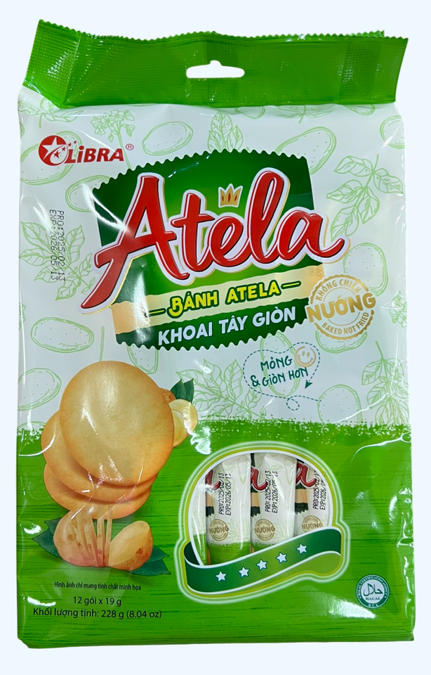 Atela แครกเกอร์กรอบมันฝรั่ง228กรัมรสเค็มกล่องบรรจุ FMCG เวียดนามรสชาติไม่ซ้ำกัน