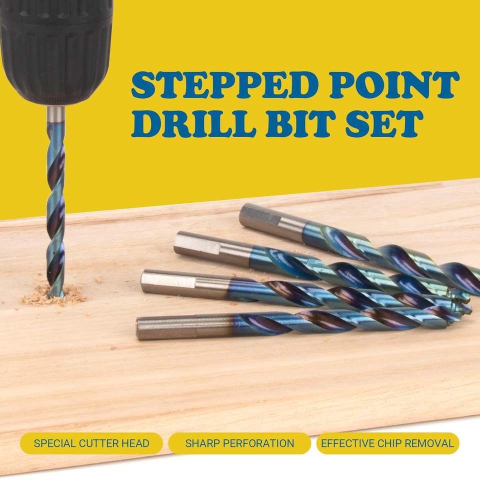 ATI-stepped Drill bit ตั้งอยู่ในกรณีกลมสำหรับเจาะอะคริลิคเหล็กโลหะแข็งขนาด1/16 "ถึง1/2" x 32nds