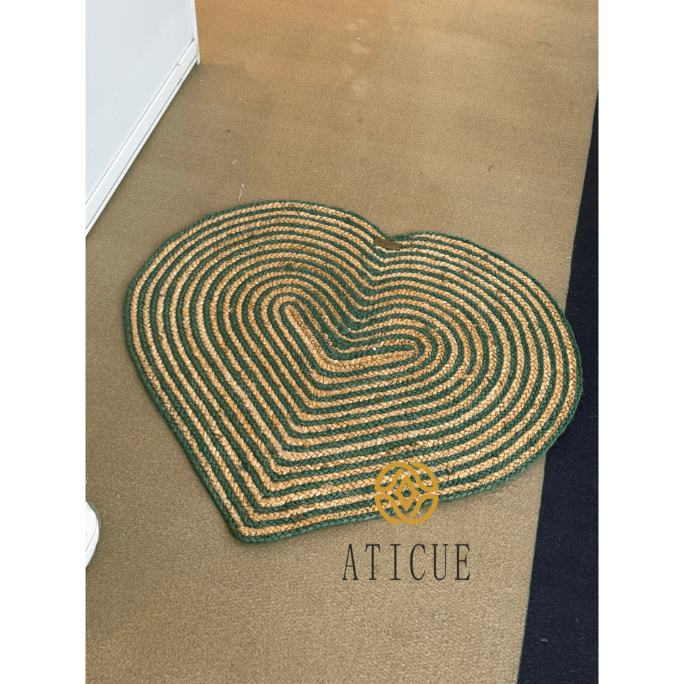 พรมรูปหัวใจถักจากปอกระเจาธรรมชาติ พรมตกแต่งทอมือสำหรับห้องนั่งเล่นหรือห้องนอน 80x50 ซม. ของตกแต่งบ้าน