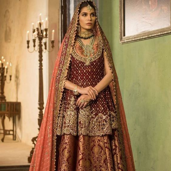 Atiya libas ดั้งเดิมของอินเดีย/ปากีสถานผู้หญิง lehenga choli กับหนักปัก zarzozi สำหรับงานแต่งงาน-วัสดุอะซิเตท