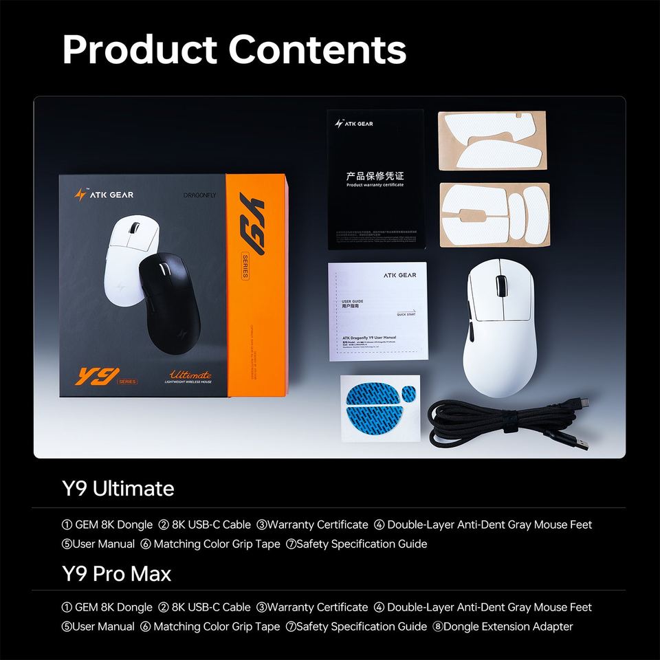 เมาส์ไร้สายคุณภาพเยี่ยม Y9แมลงปอ ATK PAW3950เบามากแบตเตอรี่800mAh มือแบตเตอร์รี่สำหรับนักเล่นเกมพีซี FPS