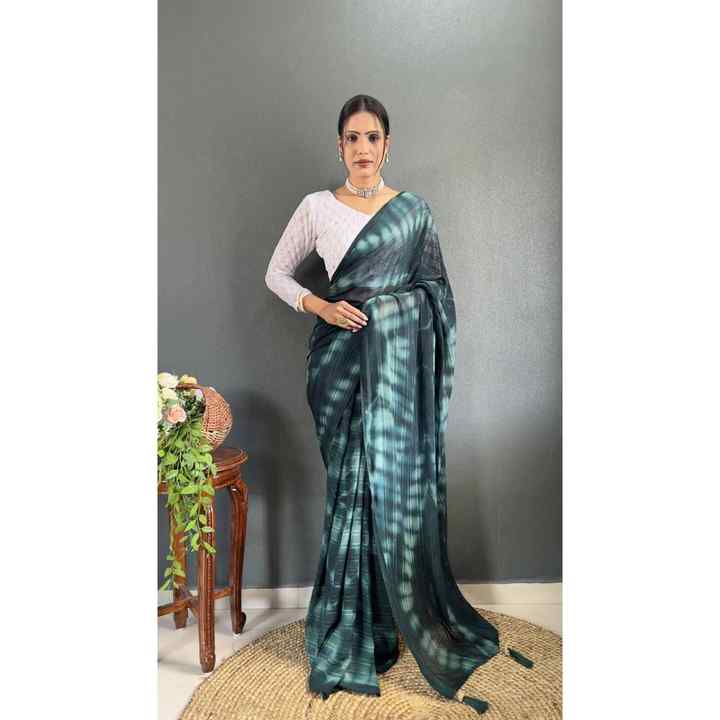 ATTRACTIVE CHIFFON TIE-DYE PRINT WORK READY to WEAR SAREE WITH UNSTITCHED BLOUSE RAMA