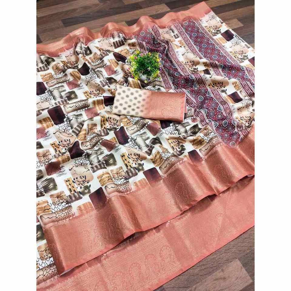 ชุดเดอร์ผ้าไหมพิมพ์ลายดิจิทัล dola ที่น่าดึงดูดพร้อมตัวยึดเกาะของ kanjivaram