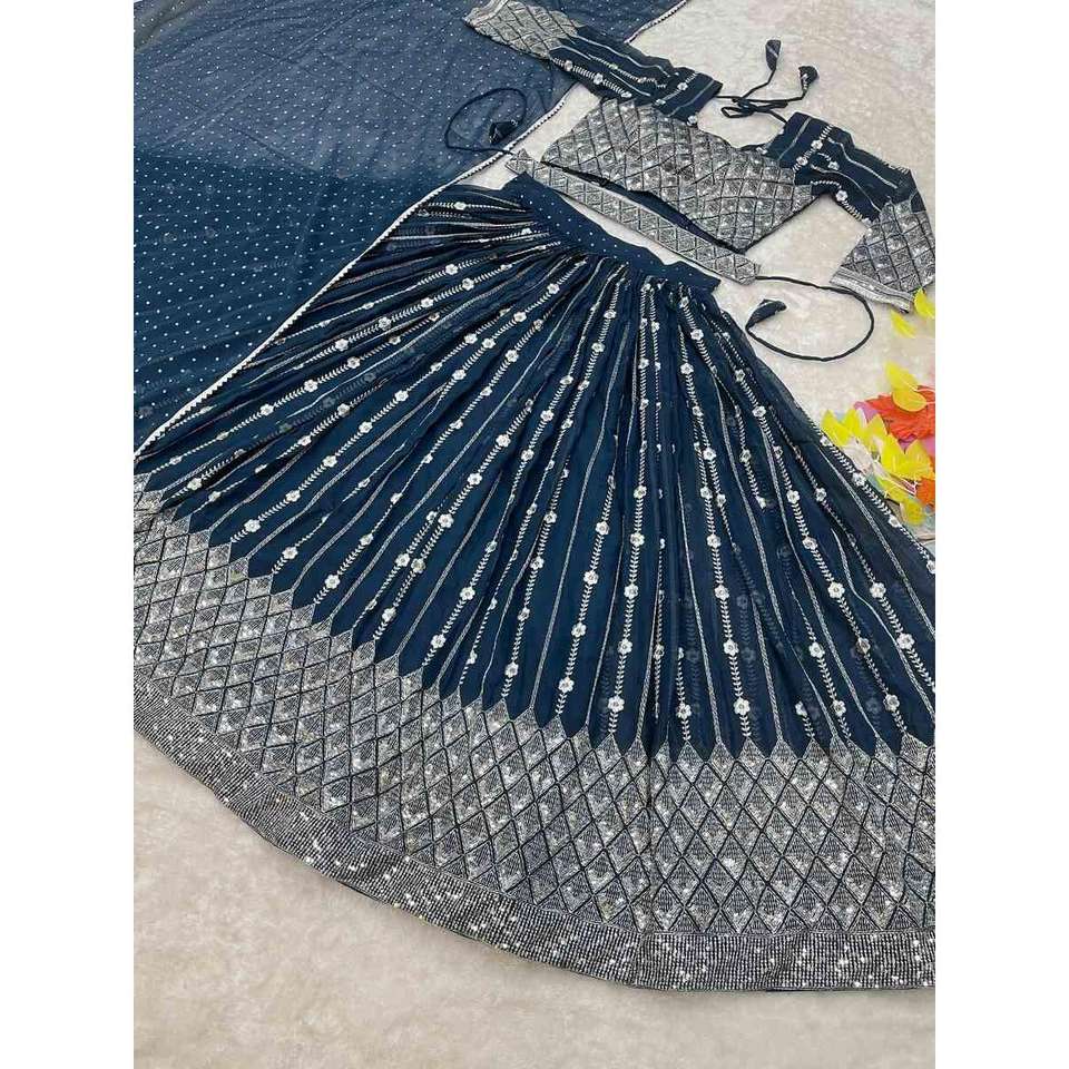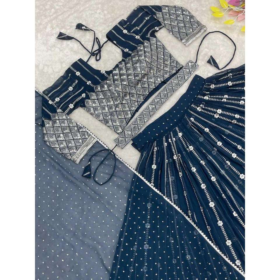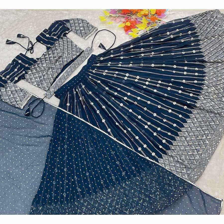 ด้ายเย็บผ้าจอร์เจียที่น่าสนใจงาน zari lehenag choli กับ dupatta TEAL