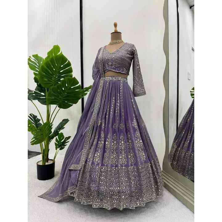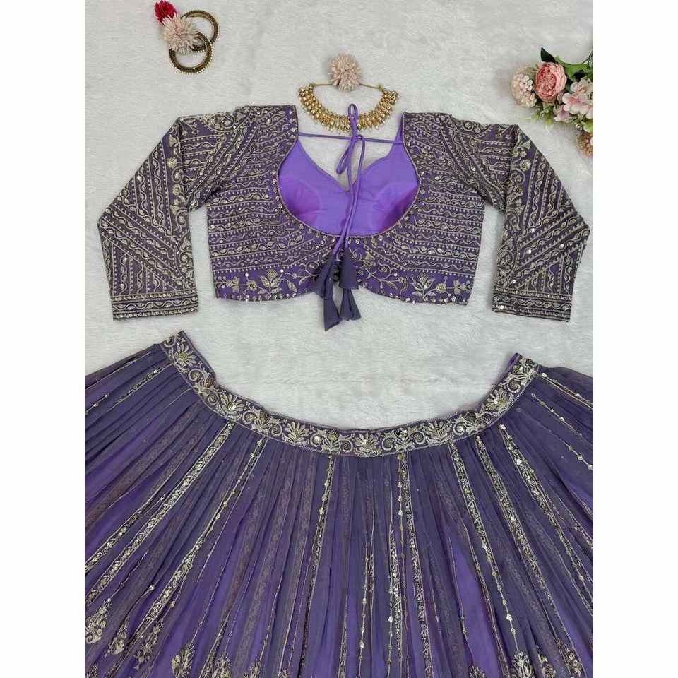 ที่น่าสนใจ georgette ด้ายกับลำดับการทำงาน lehenga choli กับลาเวนเดอร์ dupatta