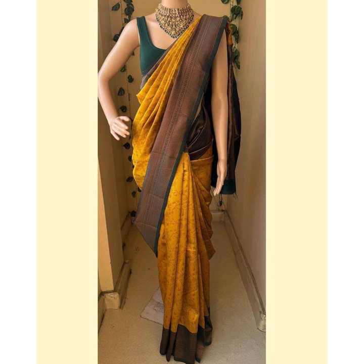 ผ้าส่าหรีงานทอผ้าไหมลายลิ้นจี่สีเหลืองสวยงาม