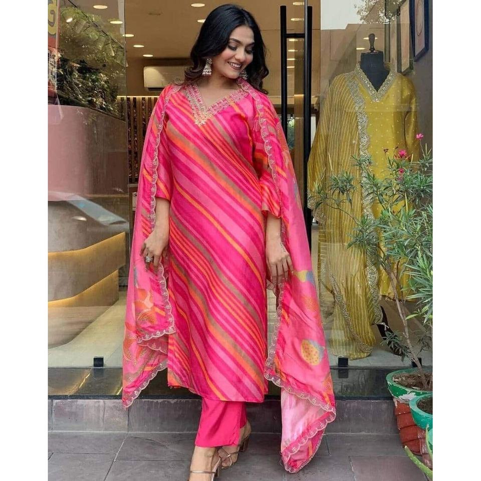 ผ้าโปร่งบางปักลายเรียงตามลำดับพื้นล่างสุดสีชมพู