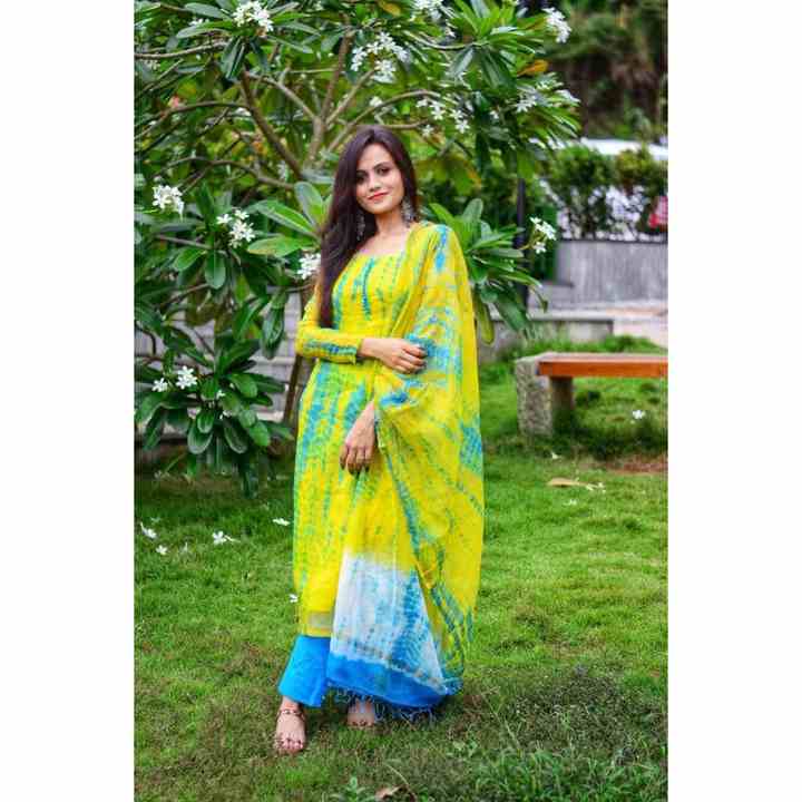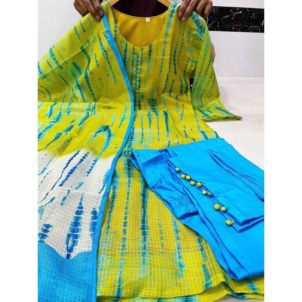 ผ้าไหมที่น่าสนใจลายพิมพ์ดิจิตอลบนด้านล่างที่มีสีเหลือง dupatta