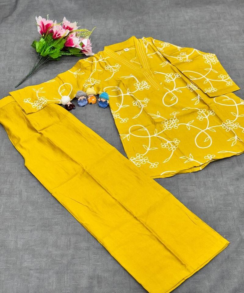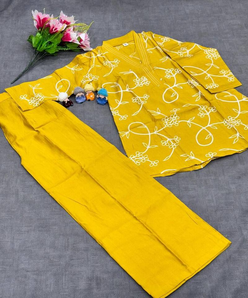 ชุดเสื้อผ้าแนวพื้นเมืองของ Vatican Ari ชุดใส่ทำงานสีเหลืองลำลอง