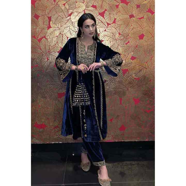 กำมะหยี่ที่น่าสนใจลำดับบน Palazzo กับ dupatta สีฟ้า