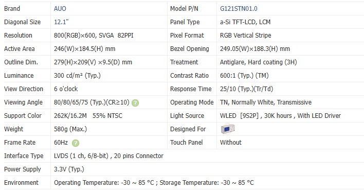 ชื่อสินค้า:G121STN01.0 จี121เอสทีเอ็น01.0