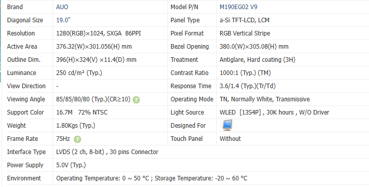 ชื่อสินค้า:M190EG02 วี9