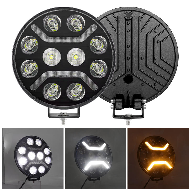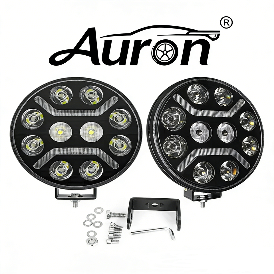ไฟส่องถนน LED สำหรับรถบรรทุก AURON ขนาด 9 นิ้ว ความสว่างสูง 10000 ลูเมนส์ ไฟตัดหมอก DRL กันน้ำ IP67 แสงสปอตไลท์ สำหรับรถบรรทุกและรถแทรกเตอร์