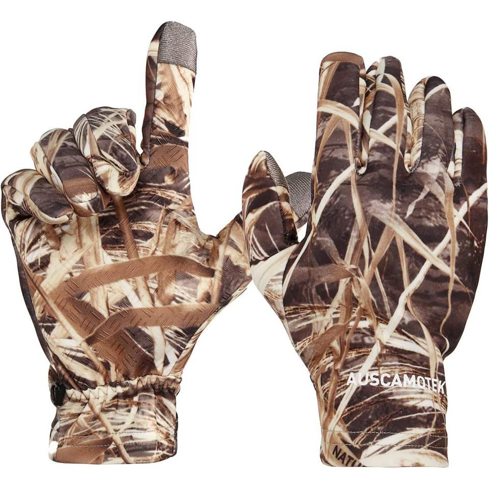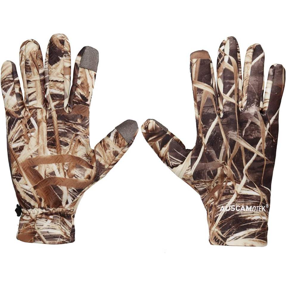 ถุงมือลายพรางสำหรับล่าสัตว์ AUSCAMOTEK ขนาดเดียว ปลายนิ้วแบบสัมผัสหน้าจอ สำหรับผู้ชาย