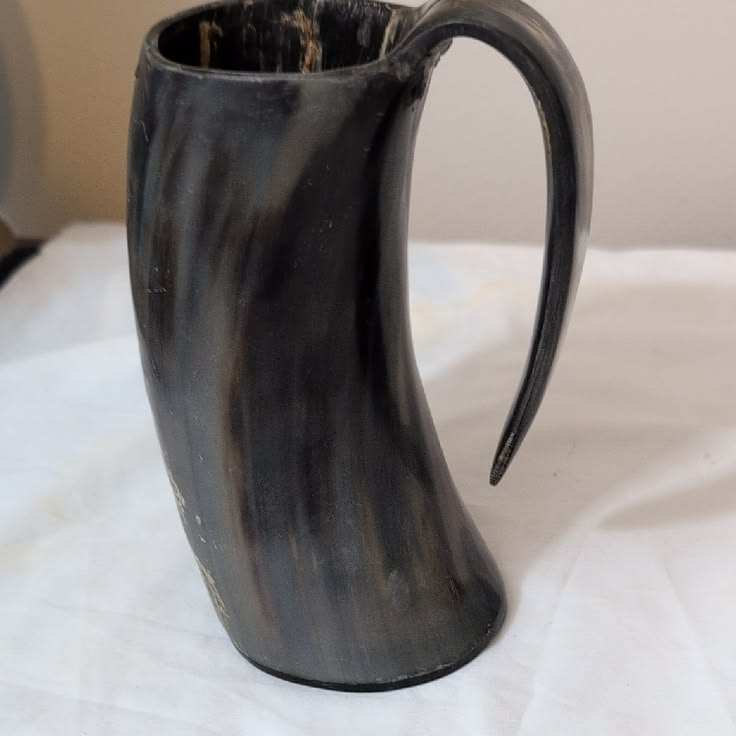 แก้วน้ำเขาควายธรรมชาติสไตล์ไวกิ้ง พร้อมหูจับคุณภาพสูง แก้วน้ำรูปทรงมือเทวดา ทำด้วยมือ เหมาะสำหรับดื่มเบียร์ ไวน์ มี้ด เอล