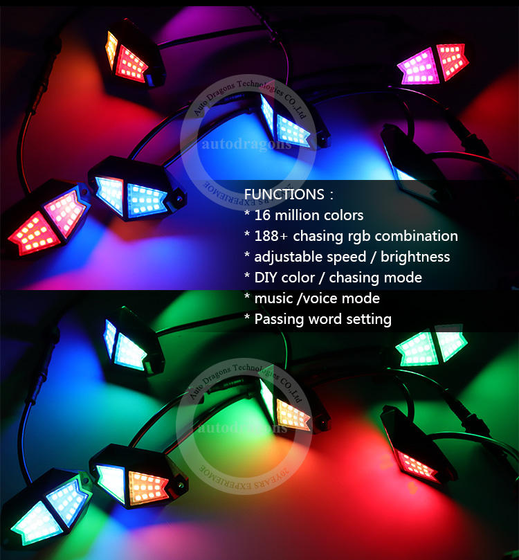 Autodragons ไฟ LED 24องศาแบบร็อค underglow 4 6 8 12 pods ชุด RGB ไล่สีสำหรับ SSV ATV UTV RZR รถบรรทุก off-road pickup