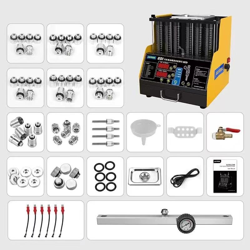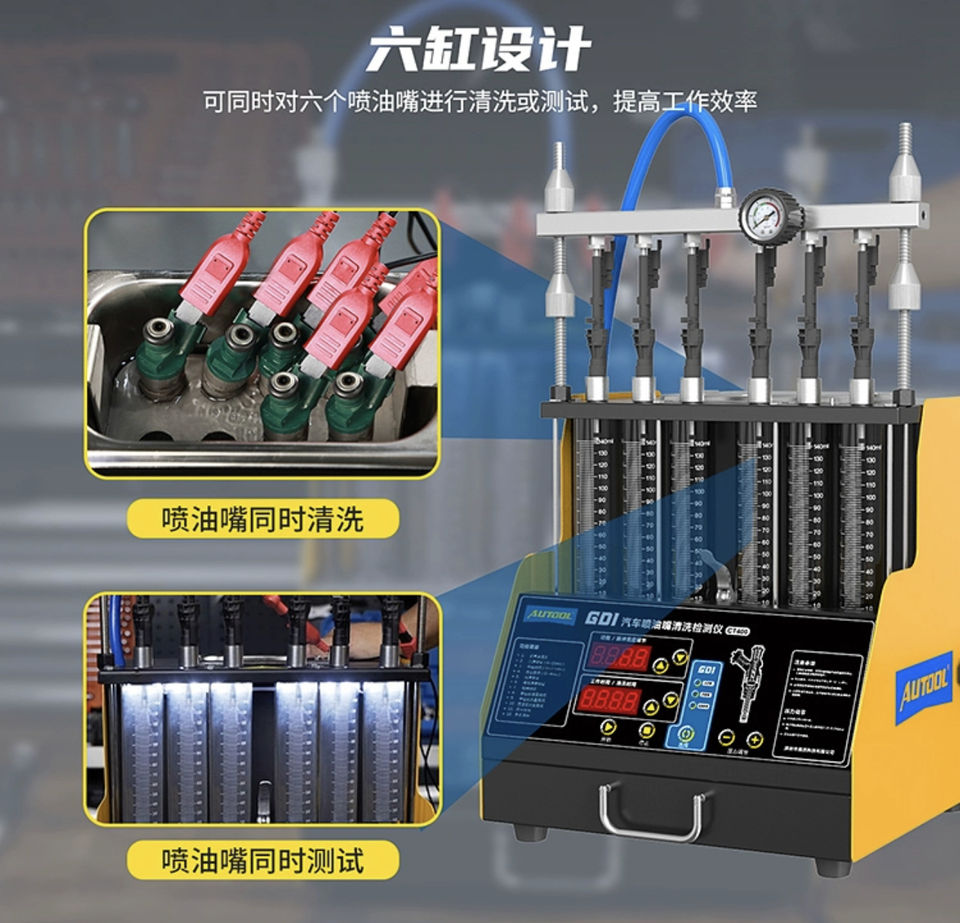เครื่องทำความสะอาดและทดสอบหัวฉีดน้ำมันเชื้อเพลิง AUTOOL CT400 GDI สำหรับเครื่องยนต์ 6 สูบ แบบอัลตราโซนิก