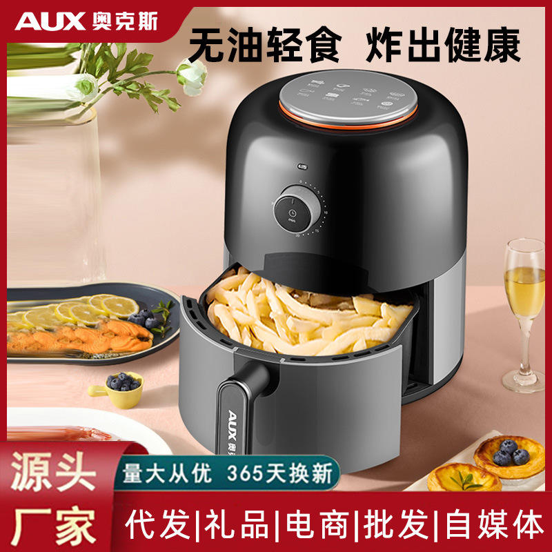 AUX Air Fryer 4L Large Capacity Round Ceramic Coating Electric Home Use Multifunctional Oil Free Fast Heating