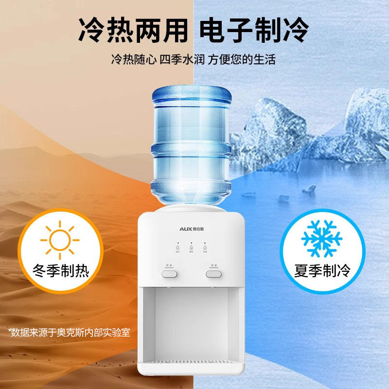 AUX เครื่องจ่ายน้ำตั้งโต๊ะ แบบร้อนและเย็น ตัวเครื่องพลาสติกไฟฟ้า ระบบทำความร้อนอัตโนมัติ สีขาว